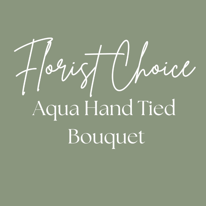 A seasonal aqua hand tied bunch of flowers, hand picked by the florist and arranged into a bubble of water presented in a gift bag/box . These are our most popular choice of bouquet!