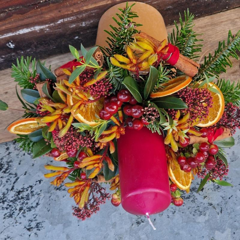 Christmas Glow Candle captures the warmth and richness of the festive season with a classic candle design featuring vibrant red and orange floral detailing and seasonal foliage. Notes of dried orange and spiced cinnamon create a comforting warmth, while red berries and festive florals add depth and traditional Christmas character. The result is a rich, inviting fragrance, designed to glow warmly and bring a cosy, joyful atmosphere to festive interiors.